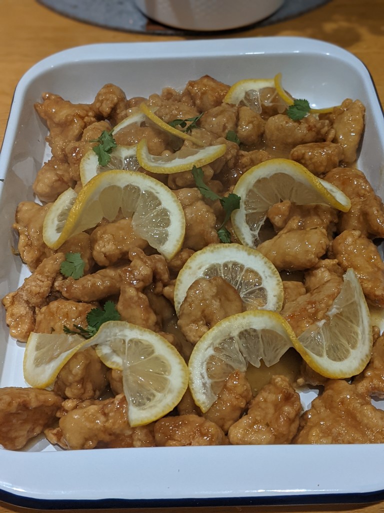 This dish was inspired by Marion’s Kitchens food blog (Chinese Lemon Chicken – Marion’s Kitchen.) We have adapted this to make it gluten free and also changed the method around.
