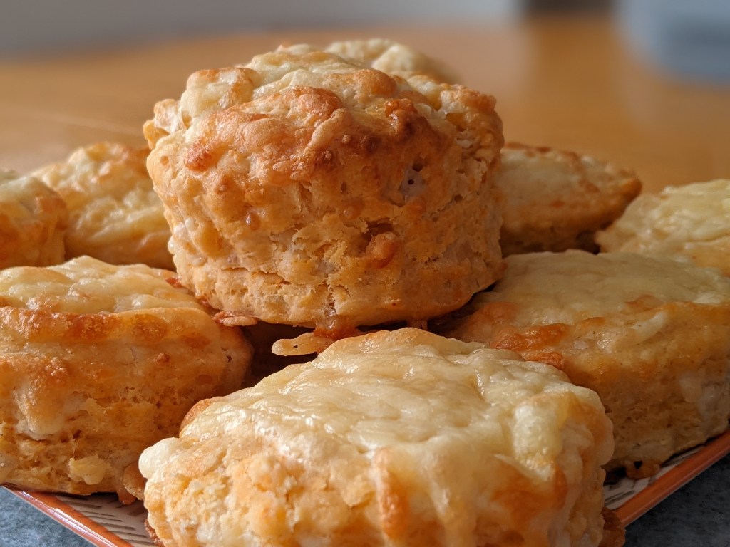 This recipe is a great snack but very indulgent it should make 10-12 scones. We had ours with some cured meat and pickles and Lara put cream cheese and mango chutney on hers.