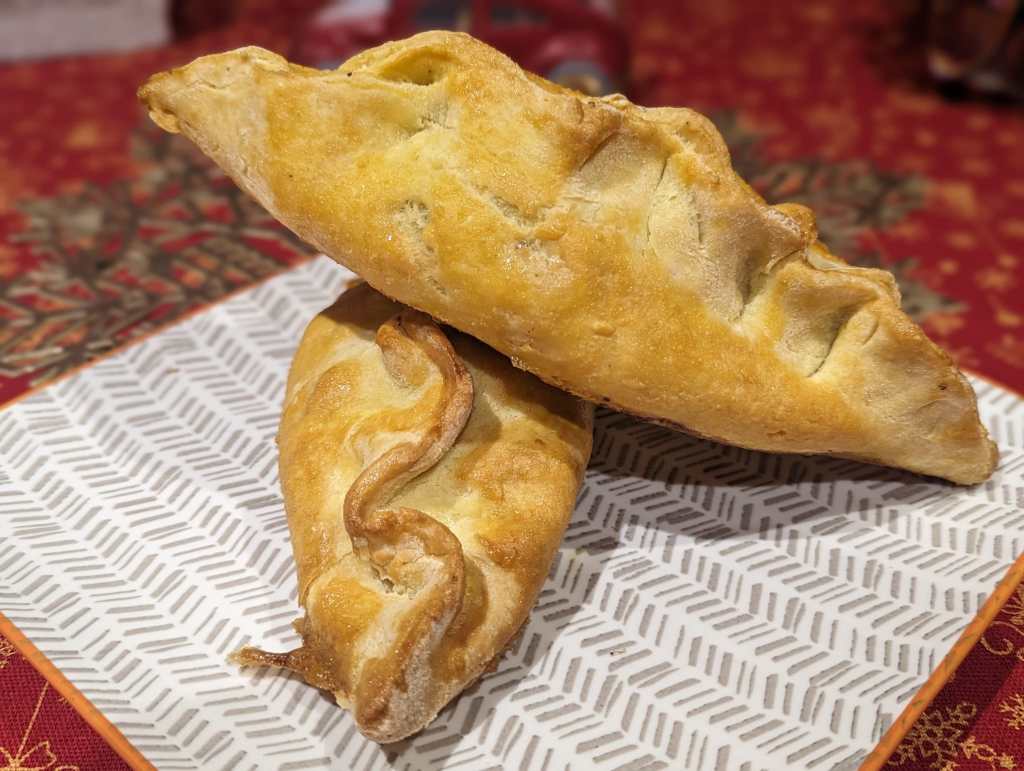 Once you have cut around the sauce, egg wash one side of the pastry and add the filling before folding over and crimping ( Either on top or on the side)