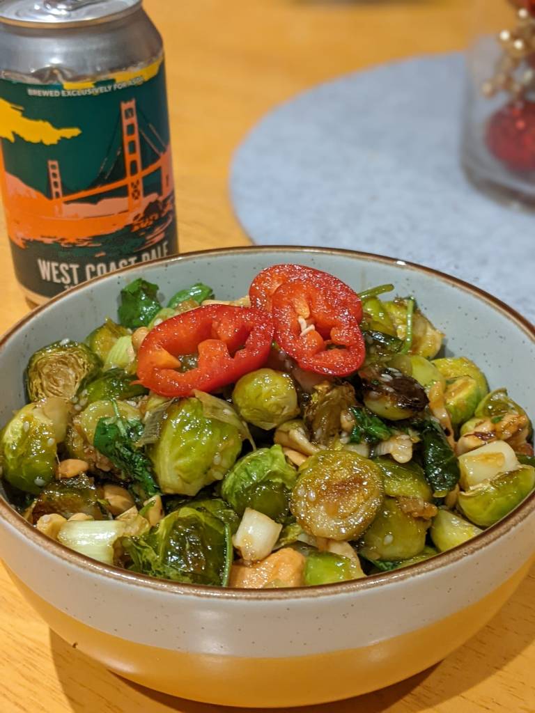 Whilst the sprouts are being cooked add all the ingredients for the kung pao sauce in a small saucepan and cook until thick. This should take 5 minutes.