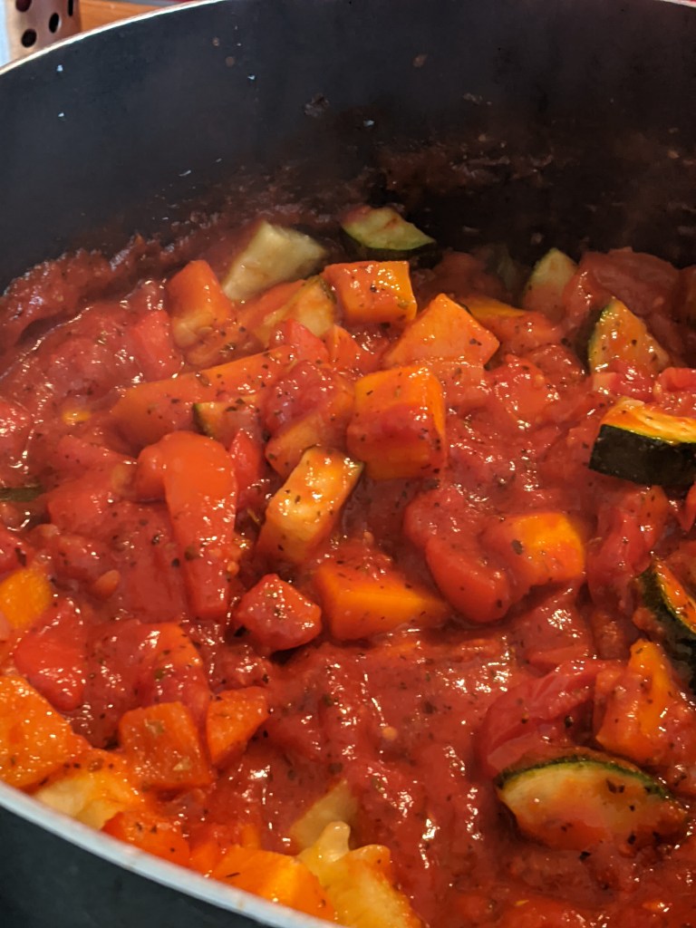Once the vegetables are cooked place in the tomato sauce, stir, season to taste and leave to cool.