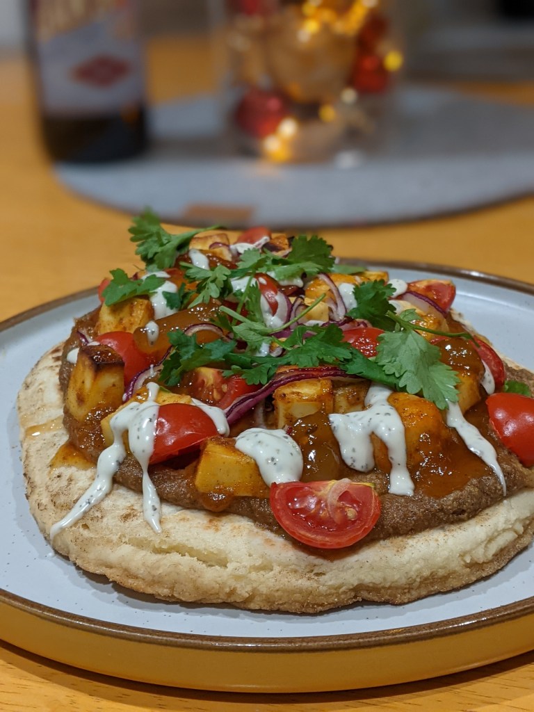 This recipe is a great comfort food, we love Indian flavours and this Naan brings them all together. This meal can serve either 2 large naans or of 4 smaller Naan’s.